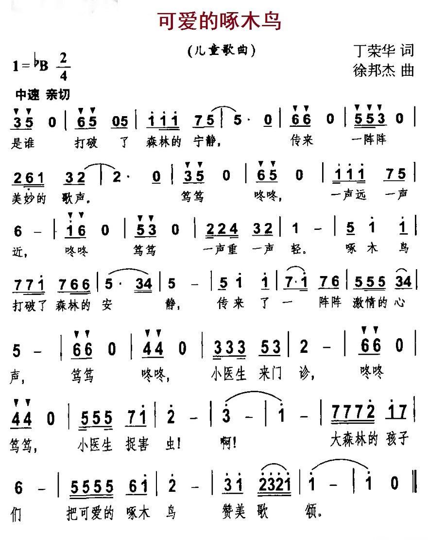 可爱的啄木鸟 可爱的啄木鸟(徐邦杰曲 丁荣华词)简谱-儿歌曲谱 曲谱 歌谱下载