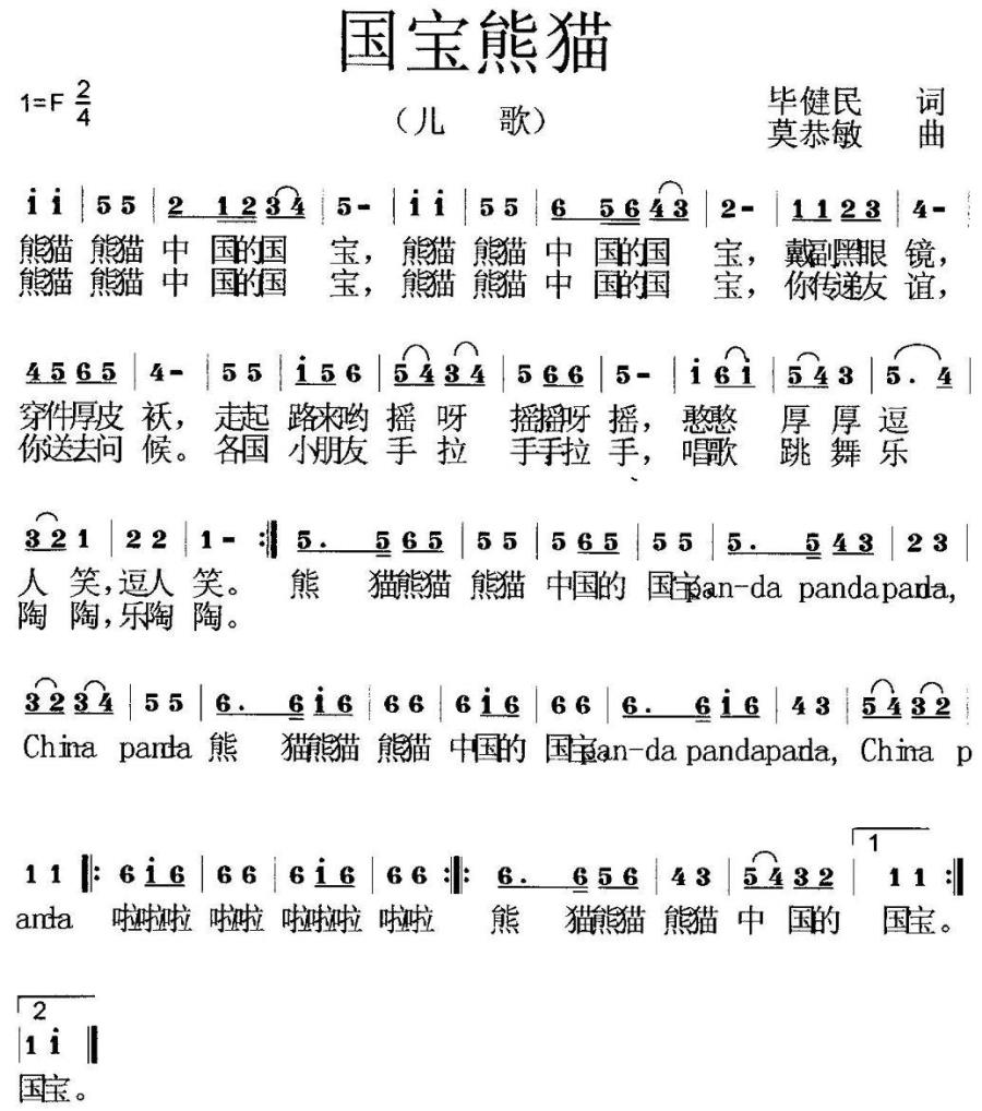 国宝熊猫 国宝熊猫(莫恭敏曲 毕健民词)简谱-儿歌曲谱 曲谱 歌谱下载