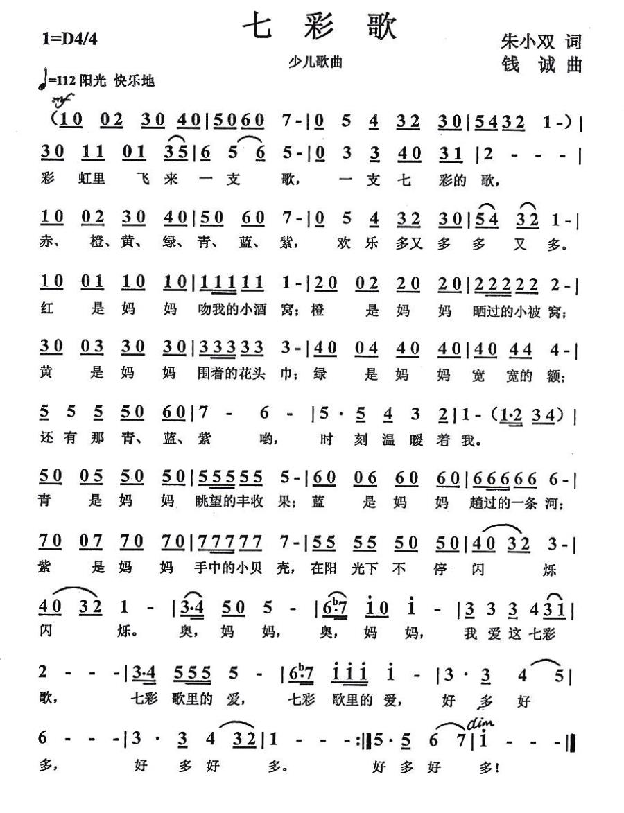 七彩歌 七彩歌(朱小双词 钱诚曲)简谱-儿歌曲谱 曲谱 歌谱下载