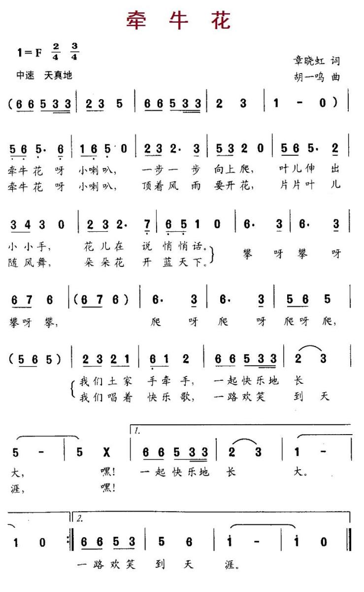 牵牛花 牵牛花(章晓红词 胡一鸣曲)简谱-儿歌曲谱 曲谱 歌谱下载
