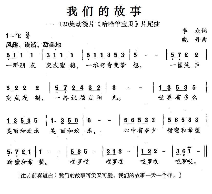 我们的故事 我们的故事(120集动漫片《哈哈羊宝贝》片尾曲)简谱-儿歌曲谱 曲谱 歌谱下载