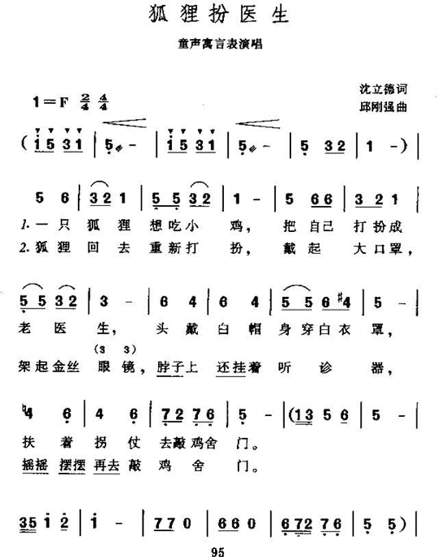 狐狸扮医生 狐狸扮医生(邱刚强曲 沈立德词)简谱-儿歌曲谱 曲谱 歌谱下载