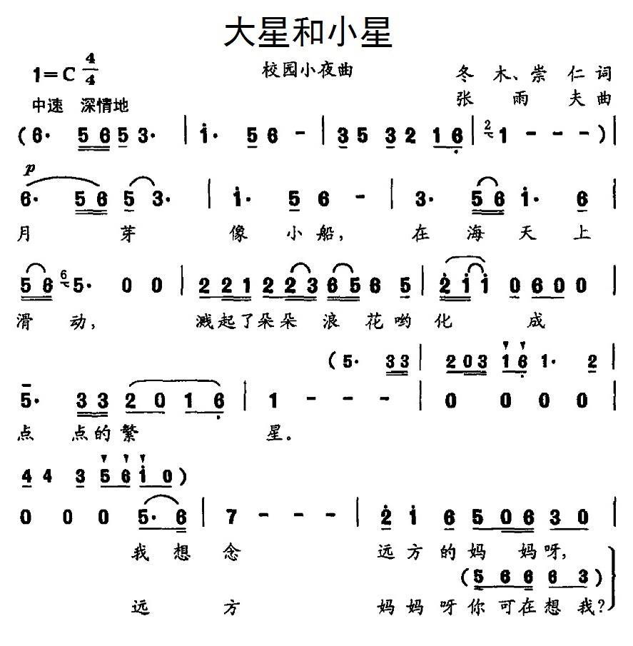大星和小星 大星和小星(张雨夫曲 冬木、崇仁词)简谱-儿歌曲谱 曲谱 歌谱下载
