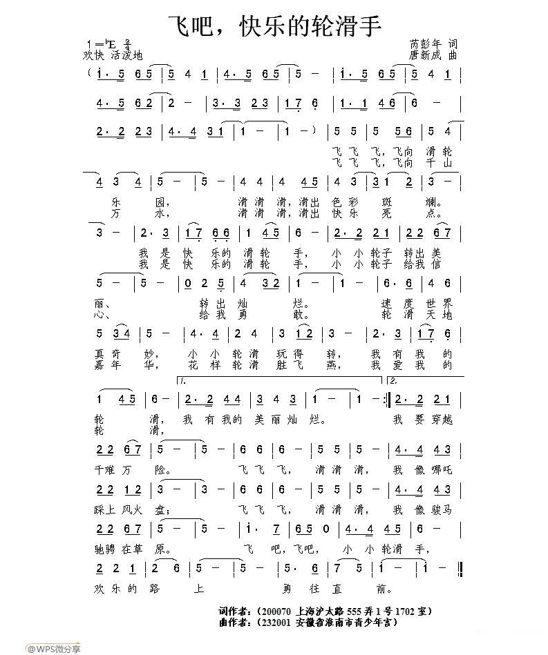 飞吧快乐的轮滑手 飞吧,快乐的轮滑手(唐新成曲 芮彭年词)简谱-儿歌曲谱 曲谱 歌谱下载