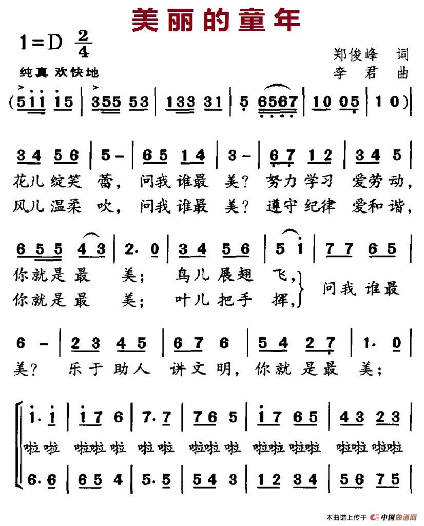 美丽的童年(郑俊峰词 李君曲、合唱)
