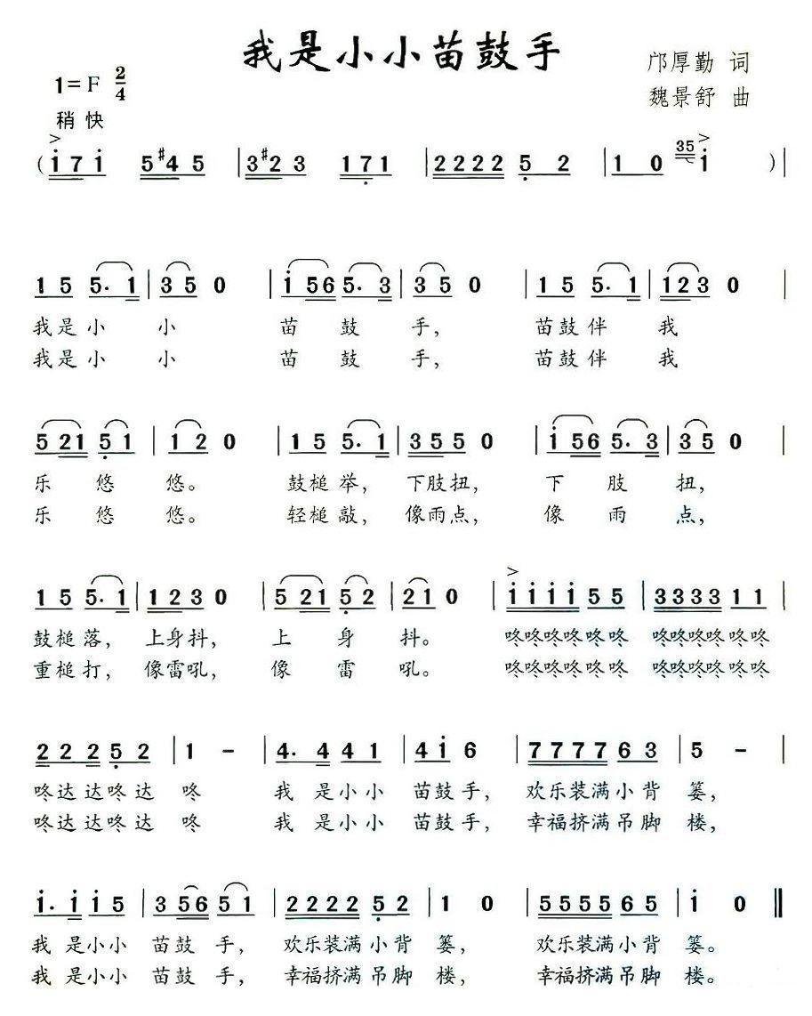 我是小小苗鼓手简谱(魏景舒作曲)
