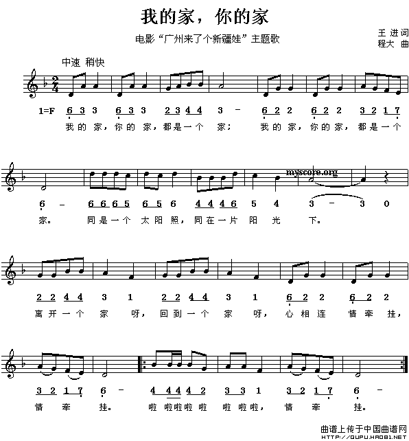 二胡乐谱曲谱 我的祖国(二胡二重奏 影片《上甘岭