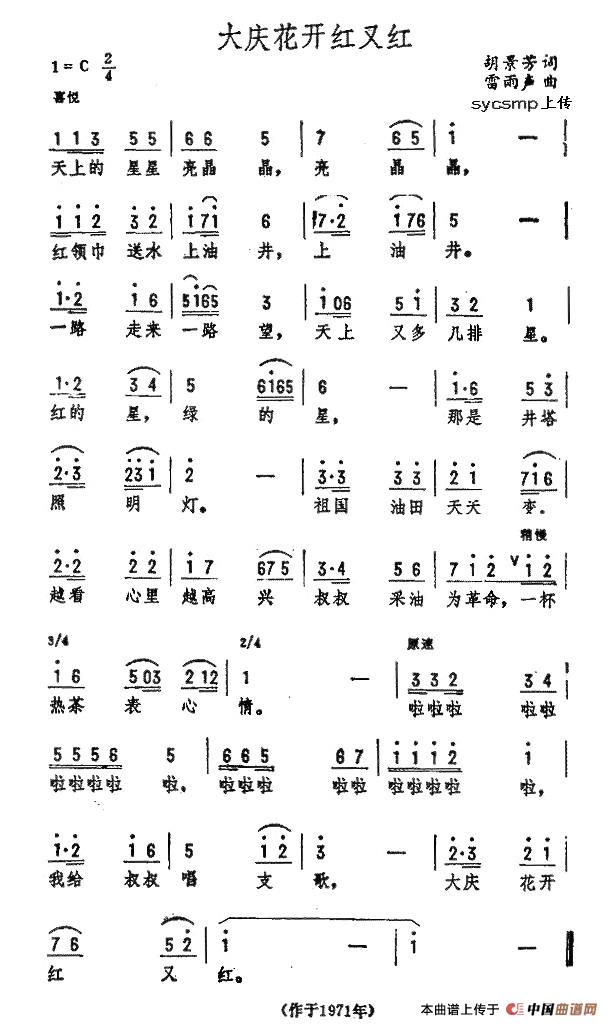 二胡乐谱曲谱 我的祖国(二胡二重奏 影片《上甘岭