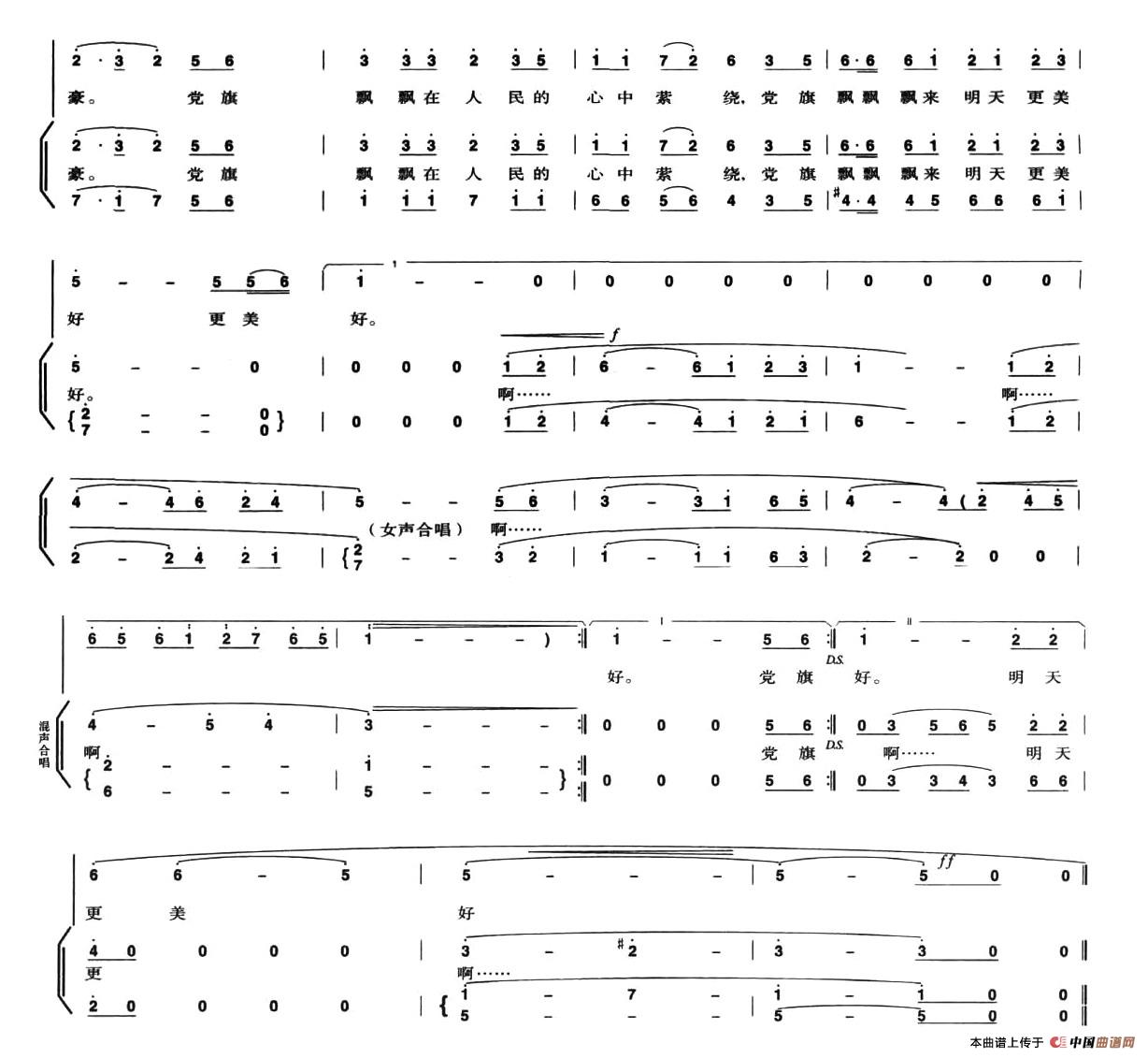 党旗飘飘(王磊词 陈大明曲)合唱谱