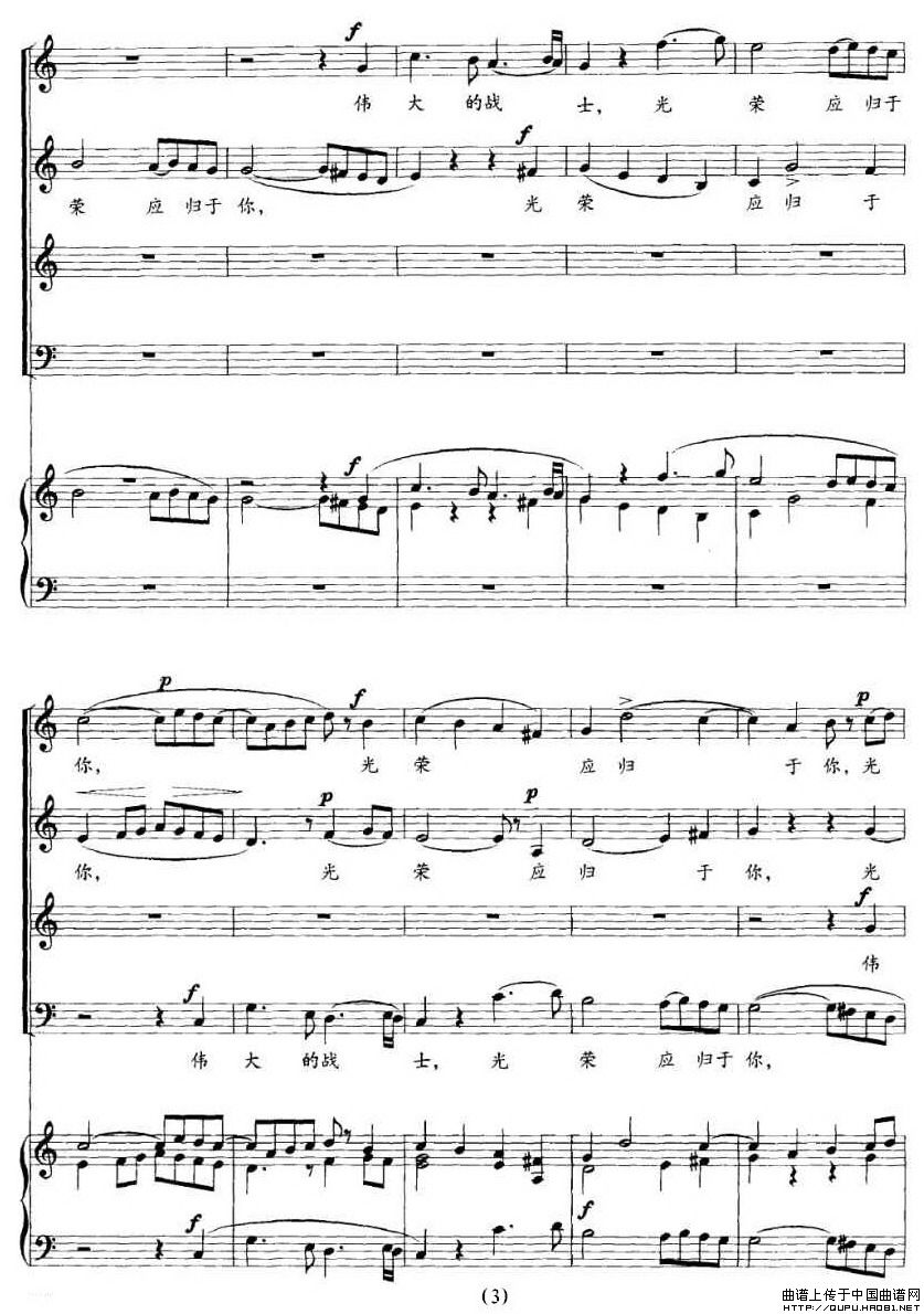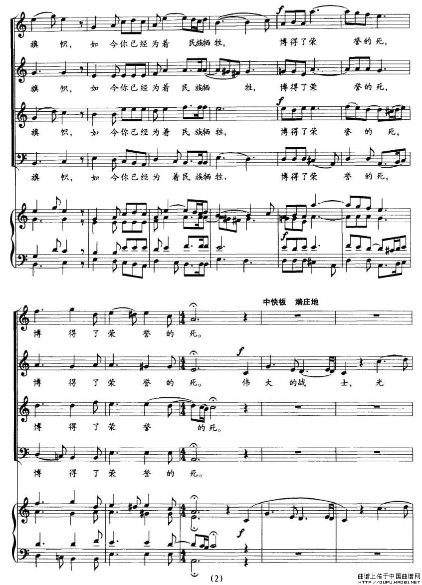 祭抗日阵亡将士诔乐(正谱)合唱谱该歌谱演奏者为吴伯超 ,歌曲名称为祭抗日阵亡将士诔乐,歌谱类型为合唱谱。集体演唱多声部声乐作品的艺术门类,常有指挥,可有伴奏或无伴奏。它要求单一声部音的高度统一,要求声部之间旋律的和谐,是普及性最强、参与面最广的音乐演出形式之一。人声作为合唱艺术的表现工具,有着其独特的优越性,能够最直接地表达音乐作品中的思想情感,激发听众的情感共鸣。声部的数量没有规定,一般有四个声部。多为男高音区,男中低音区,女高音区,女中低音区。
