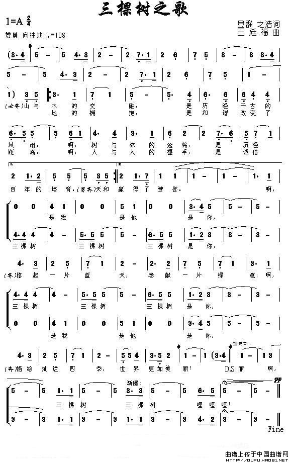 三棵树之歌合唱谱