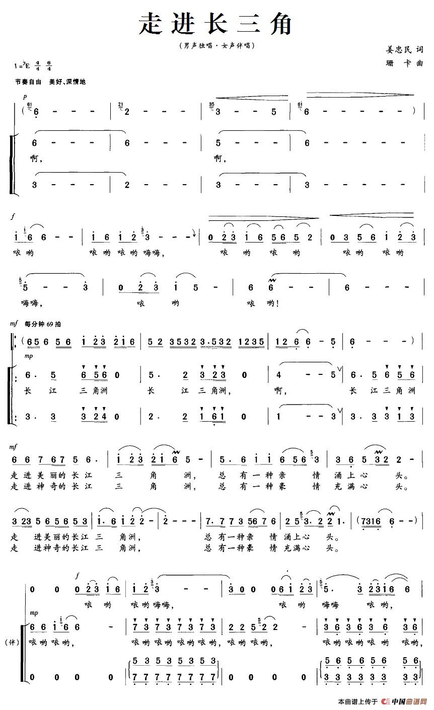 走进长三角合唱谱该歌谱演奏者为珊卡,歌曲名称为走进长三角,歌谱类型为合唱谱。集体演唱多声部声乐作品的艺术门类,常有指挥,可有伴奏或无伴奏。它要求单一声部音的高度统一,要求声部之间旋律的和谐,是普及性最强、参与面最广的音乐演出形式之一。人声作为合唱艺术的表现工具,有着其独特的优越性,能够最直接地表达音乐作品中的思想情感,激发听众的情感共鸣。声部的数量没有规定,一般有四个声部。多为男高音区,男中低音区,女高音区,女中低音区。