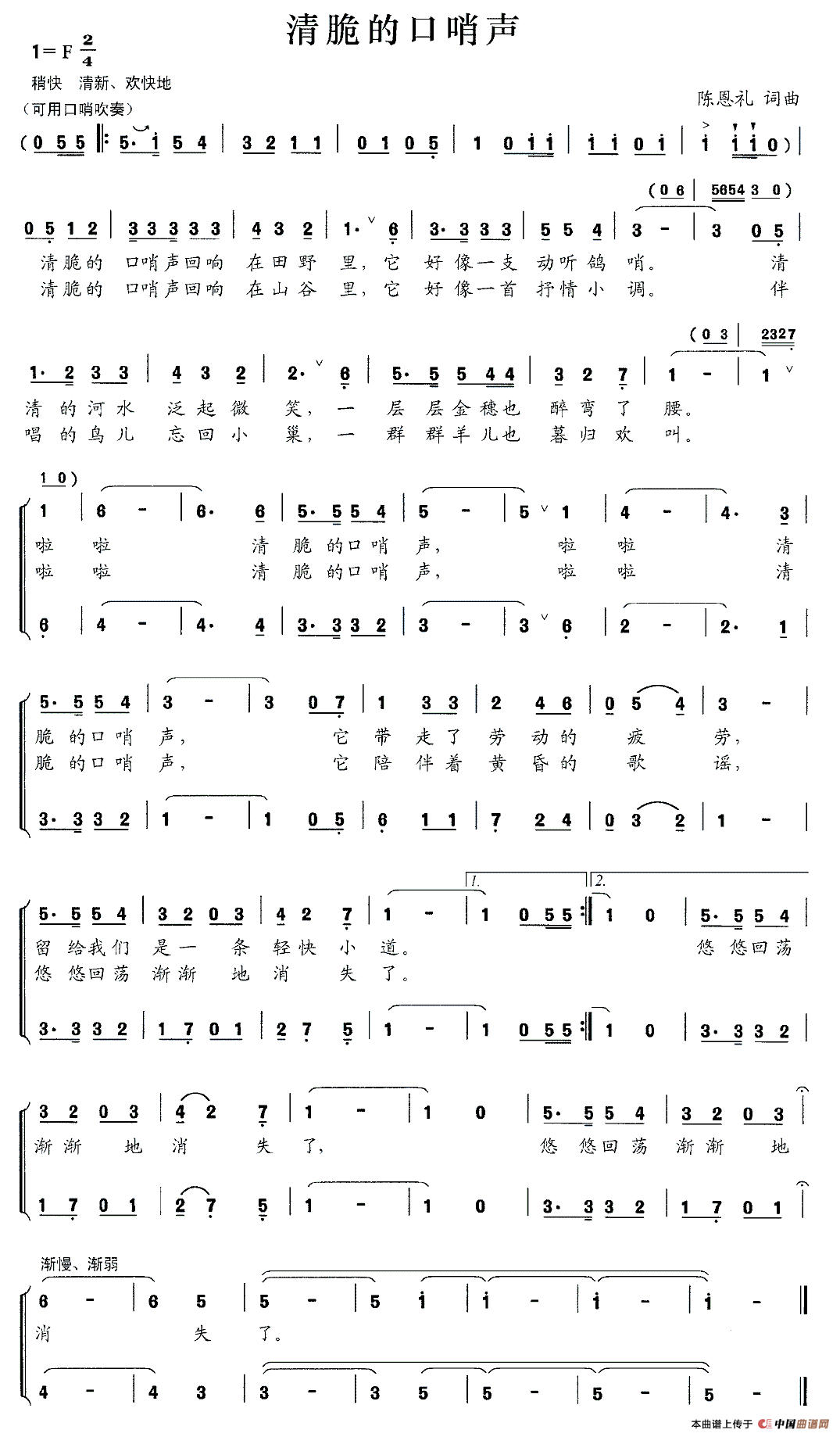 葫芦丝乐谱曲谱 雪莲花(石夫曲)