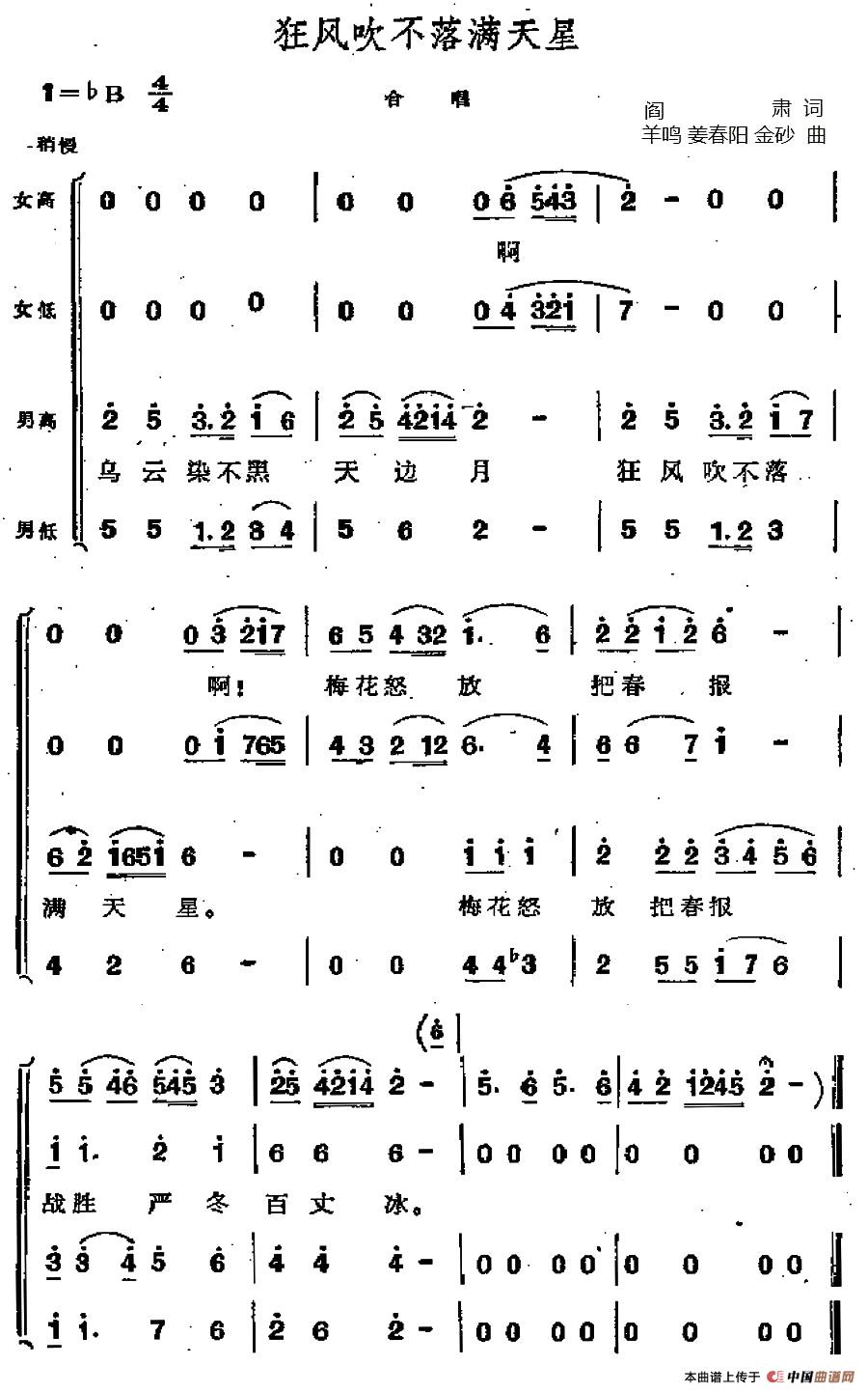 狂风吹不落满天星(歌剧《江姐》选曲)合唱谱