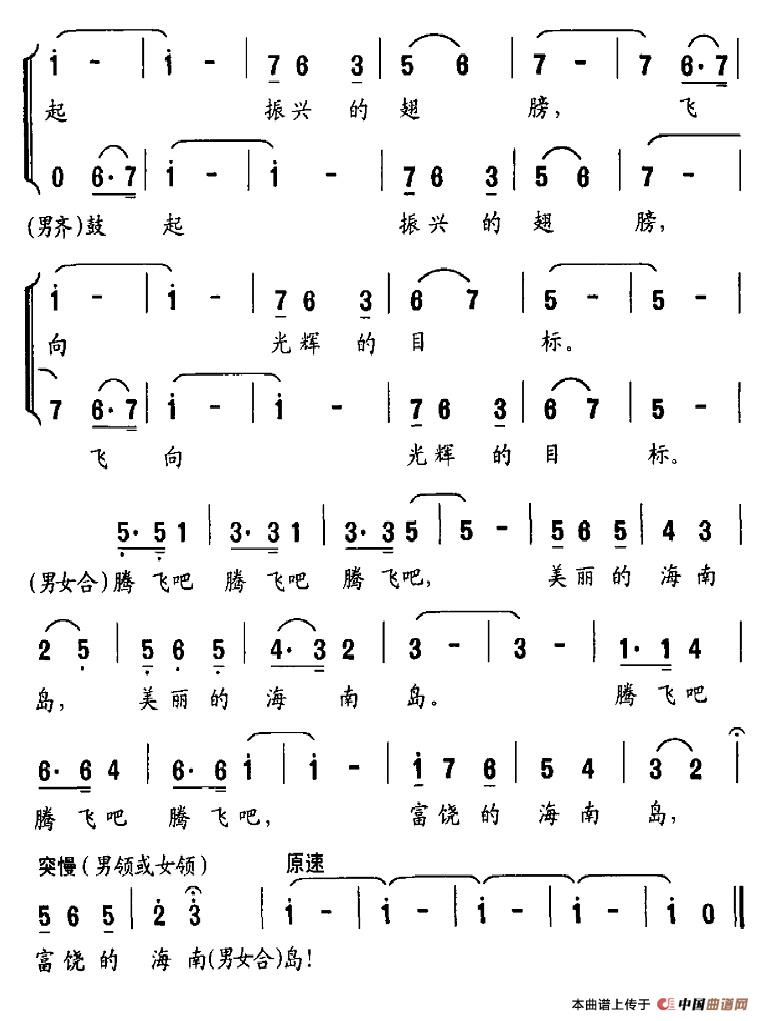 腾飞吧,海南岛(男女声小合唱)合唱谱