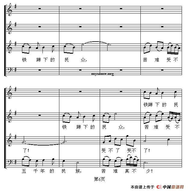 怒吼吧,黄河!(混声合唱、五线谱版)合唱谱该歌谱演奏者为冼星海,歌曲名称为怒吼吧,黄河!,歌谱类型为合唱谱。集体演唱多声部声乐作品的艺术门类,常有指挥,可有伴奏或无伴奏。它要求单一声部音的高度统一,要求声部之间旋律的和谐,是普及性最强、参与面最广的音乐演出形式之一。人声作为合唱艺术的表现工具,有着其独特的优越性,能够最直接地表达音乐作品中的思想情感,激发听众的情感共鸣。声部的数量没有规定,一般有四个声部。多为男高音区,男中低音区,女高音区,女中低音区。