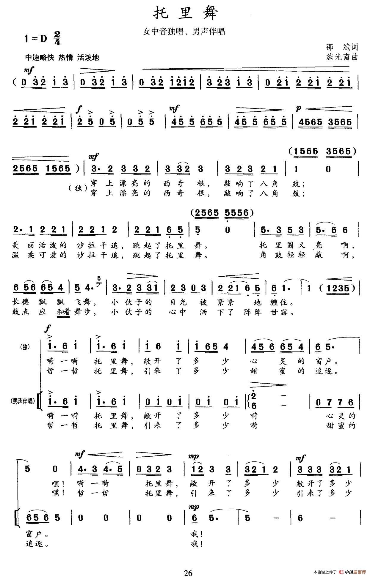 共产党好简谱(林业良作曲)