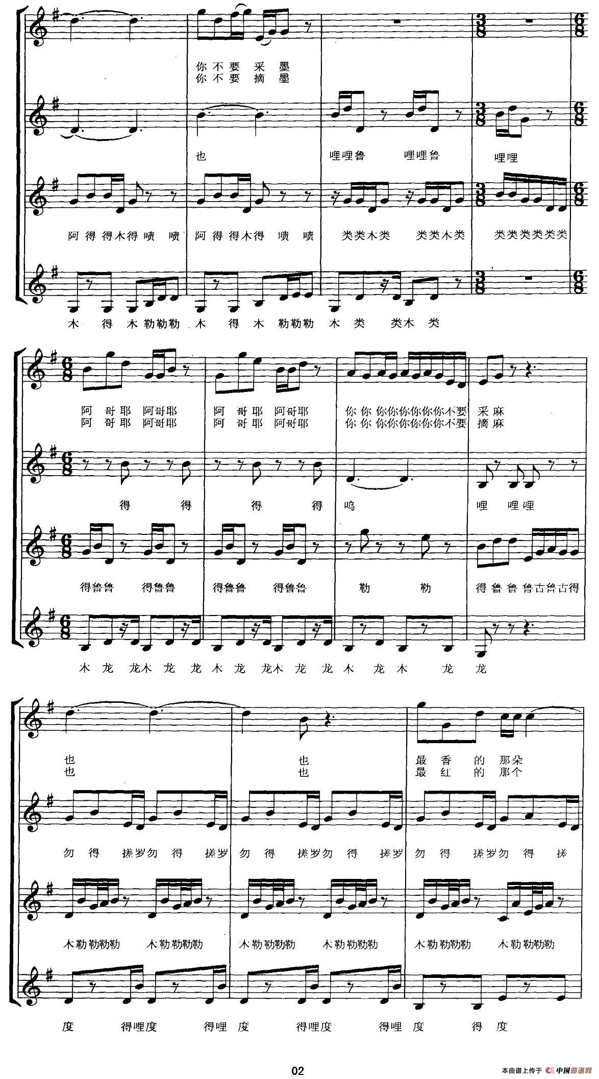 悠叶叶(无伴奏合唱、五线谱)合唱谱