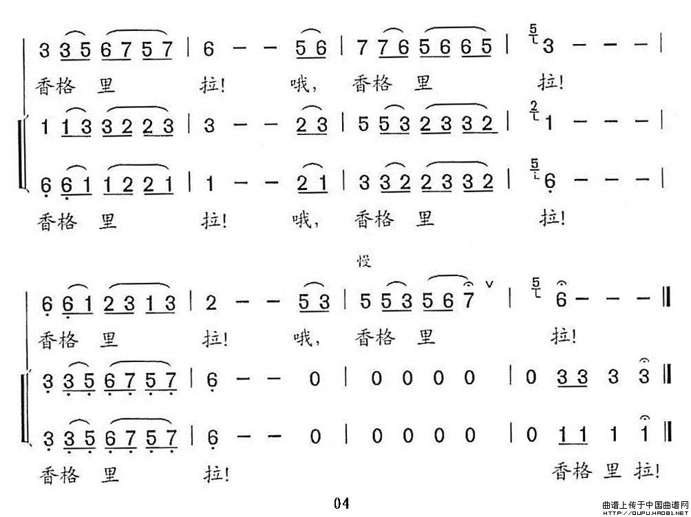 香格里拉(黄志龙词 边洛曲)合唱谱自由版