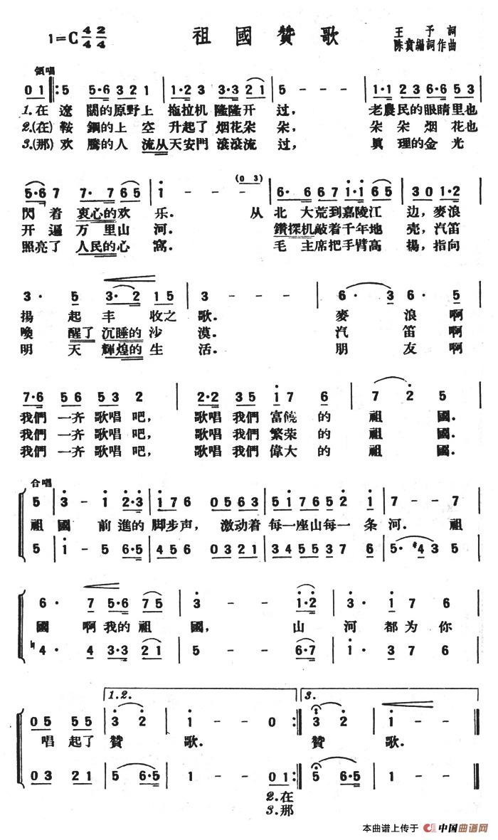 祖国赞歌(王予词 陈贵曲)合唱谱