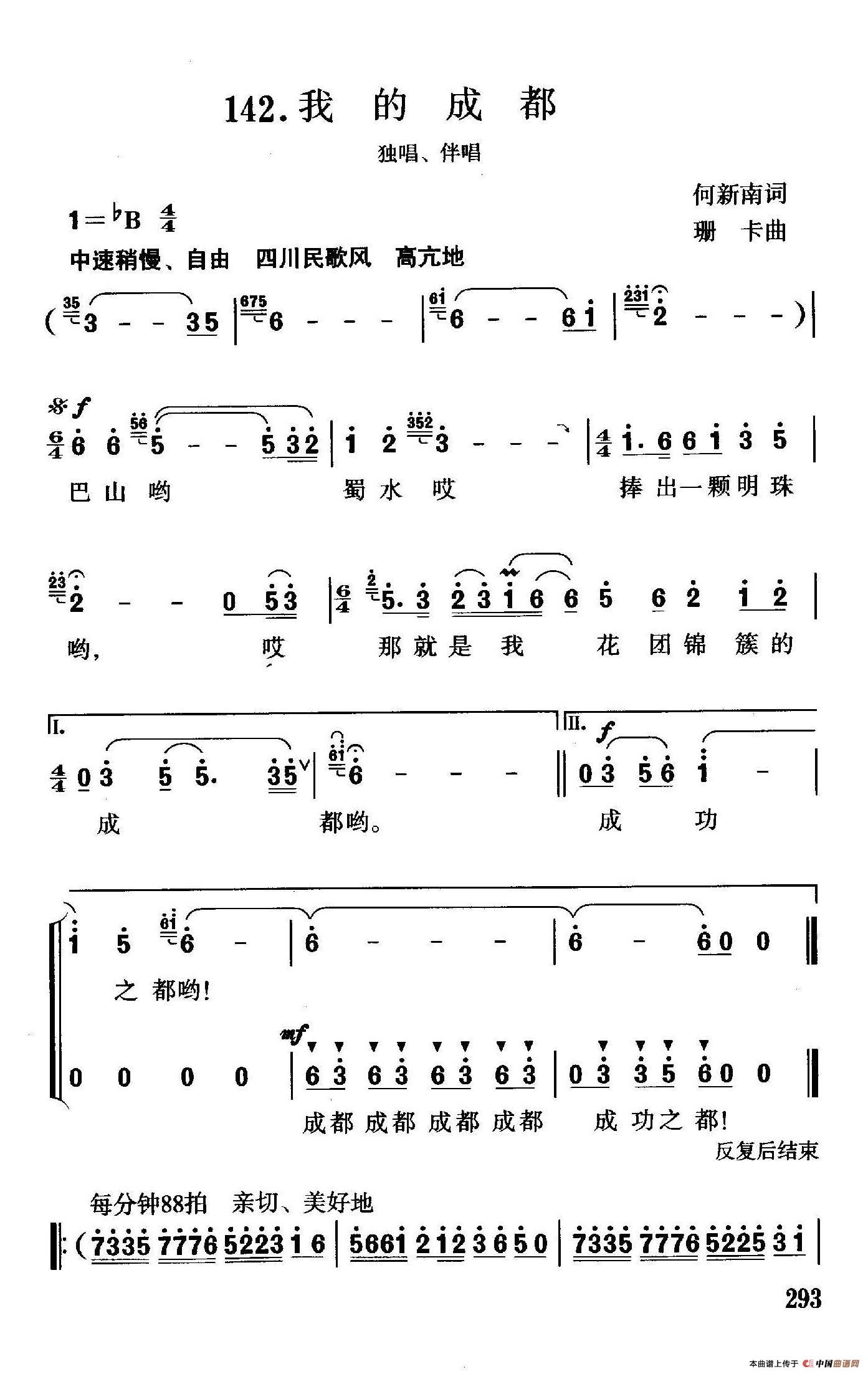 我的成都(独唱、伴唱)合唱谱该歌谱演奏者为珊卡,歌曲名称为我的成都,歌谱类型为合唱谱。我的成都(独唱、伴唱) 何新南 词 珊卡 曲
