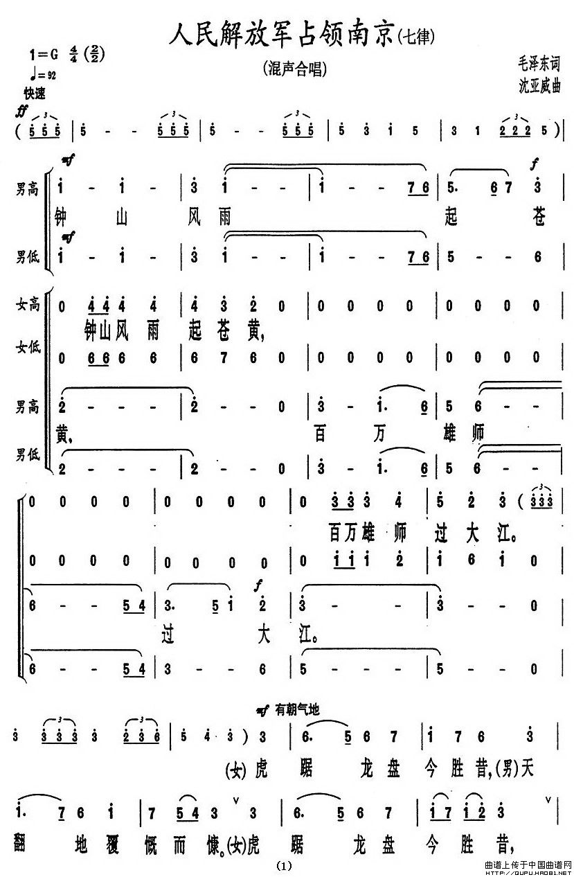 人民解放军占领南京·七律(沈亚威作曲、版本二