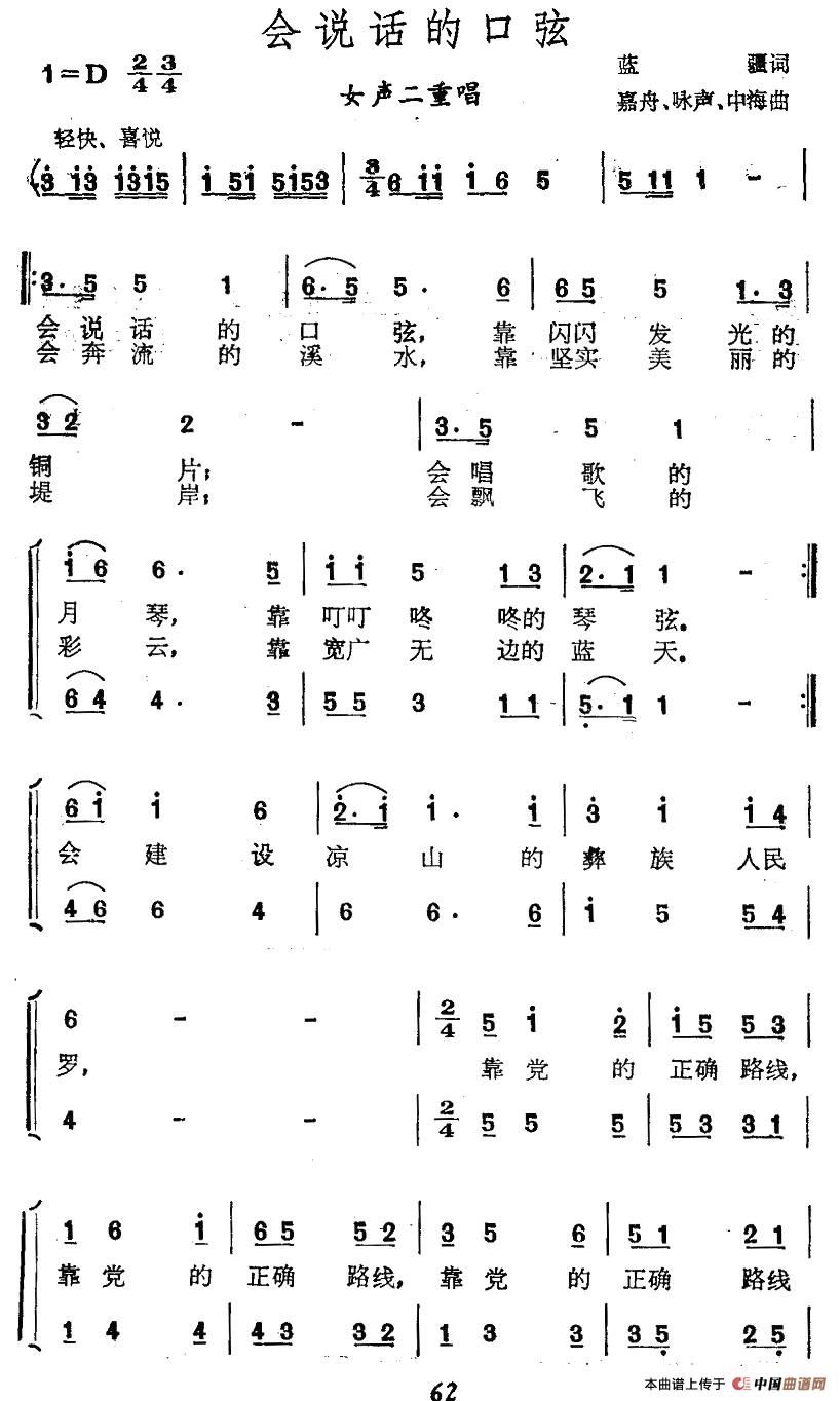 会说话的口弦合唱谱
