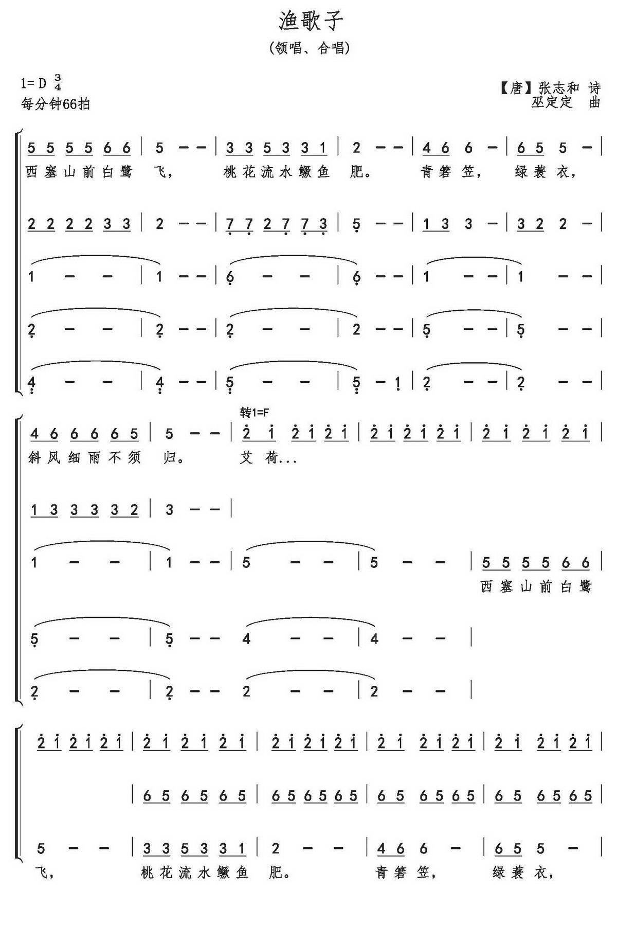 渔歌子合唱曲谱(巫定定作曲)