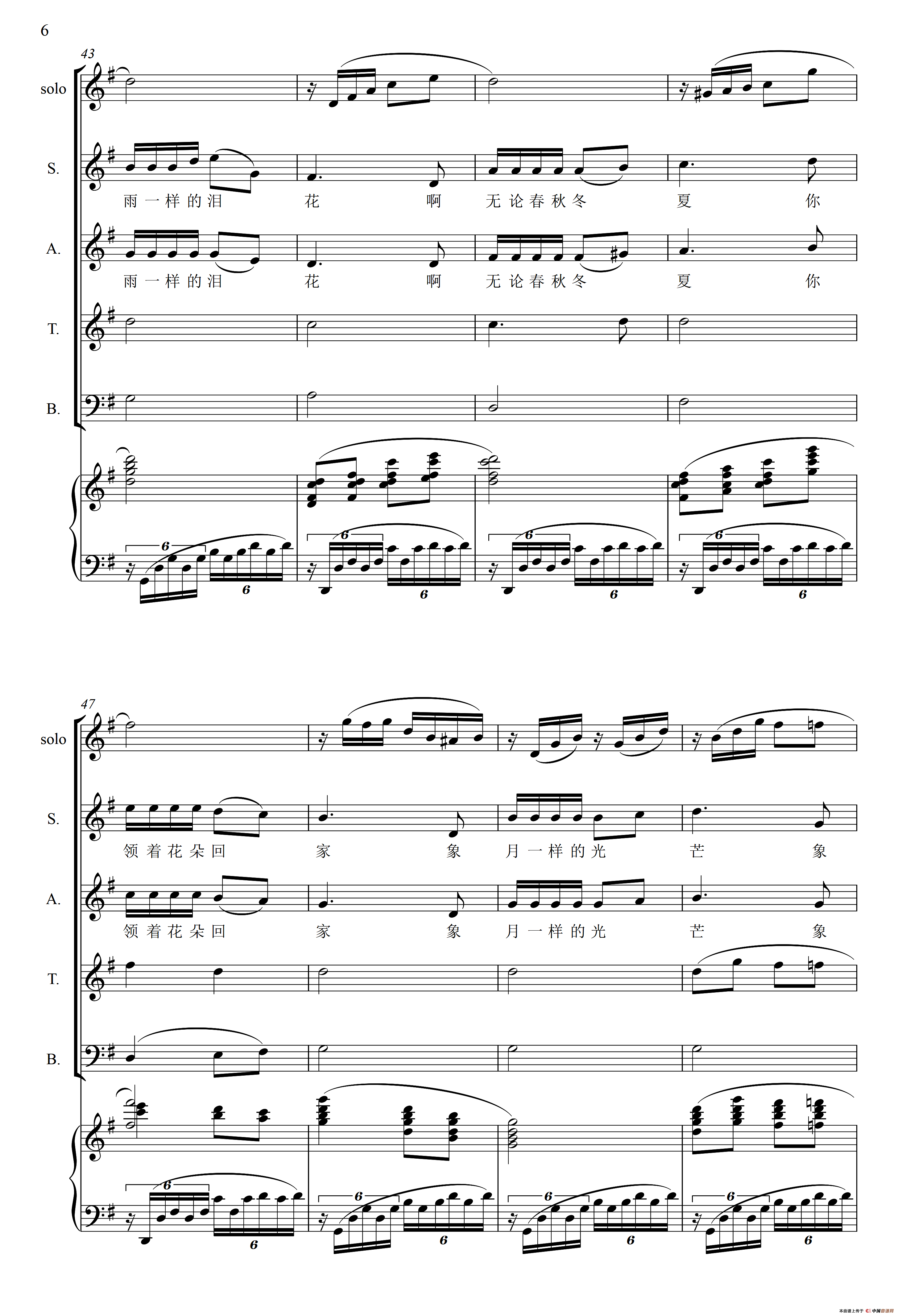 4、音响层次多。由于合唱是多声部音乐,不同的和弦、不同的和弦转位、不同的声部组合、不同的力度级别、不同的音色变化等等,都会产生不同的音响效果和层次。