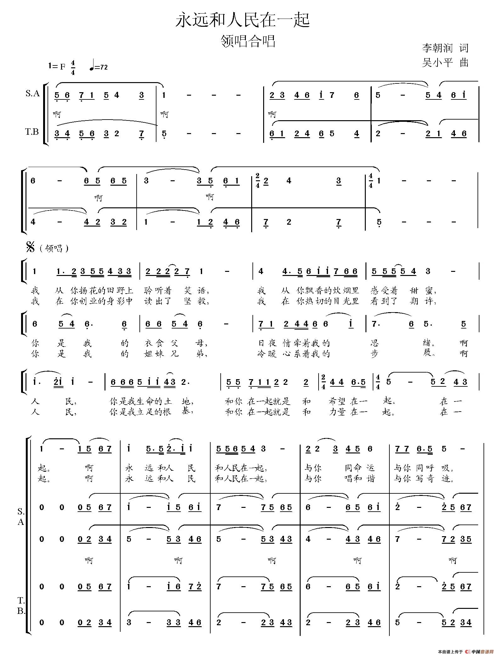 永远和人民在一起(李朝润词 吴小平曲)