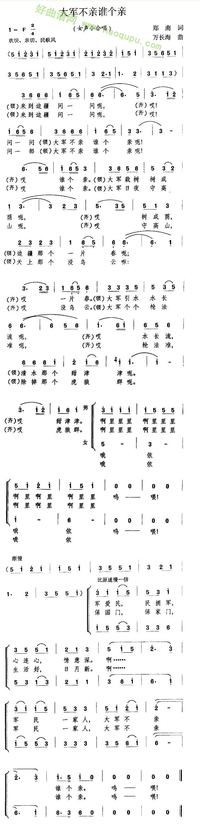 《大军不亲谁个亲》(女声小合唱)合唱谱