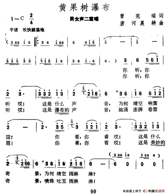 黄果树瀑布(曾宪瑞词 唐诃 晨耕曲)合唱谱
