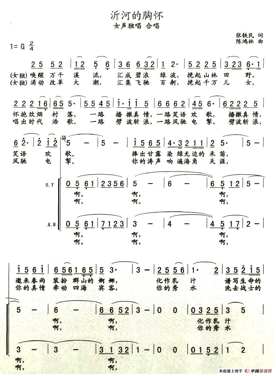 沂河的胸怀合唱谱