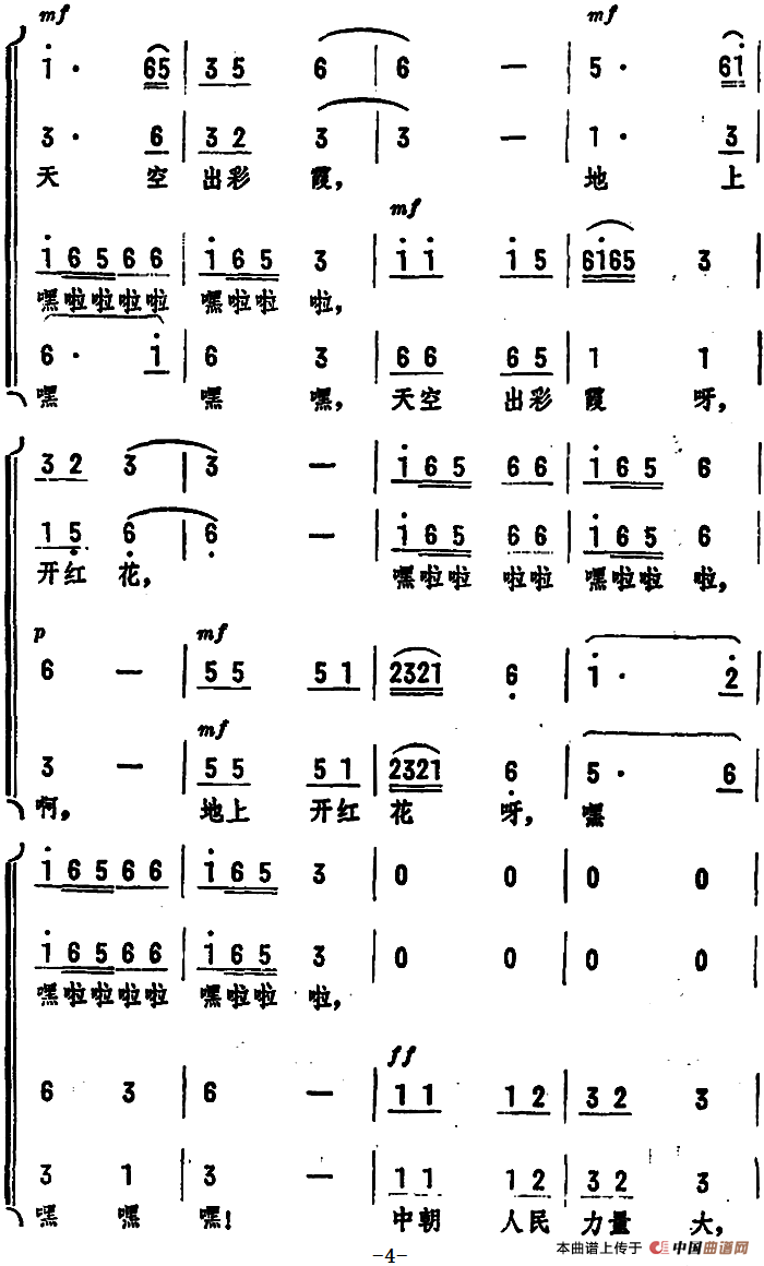 4、音响层次多。由于合唱是多声部音乐,不同的和弦、不同的和弦转位、不同的声部组合、不同的力度级别、不同的音色变化等等,都会产生不同的音响效果和层次。