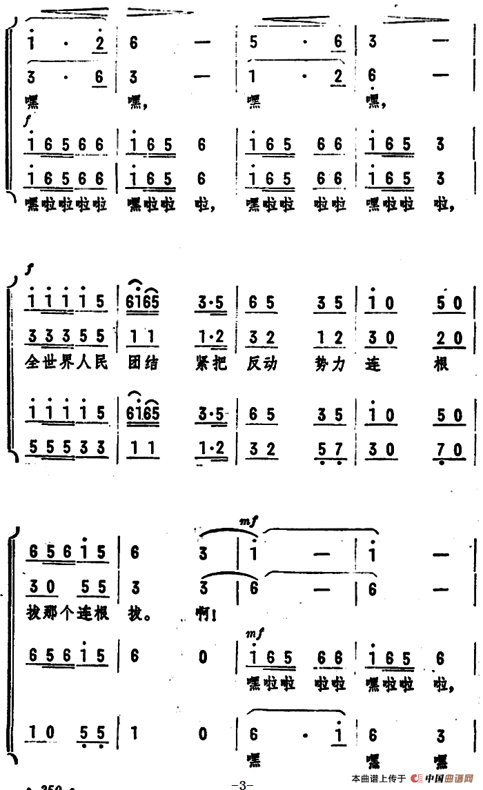 全世界人民团结紧(德志 孑人词 张风曲)合唱谱