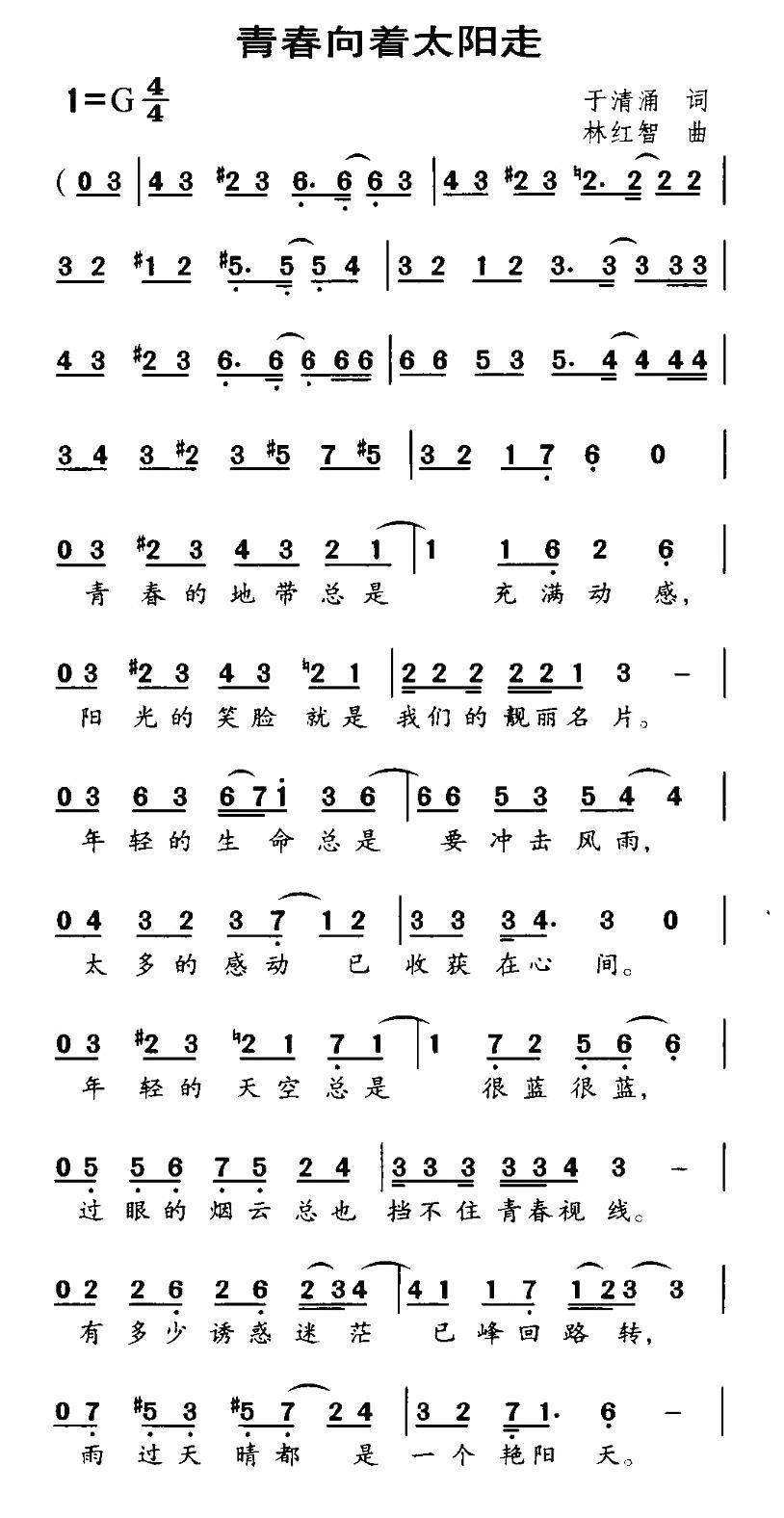 青春向着太阳走简谱(林红智作曲)