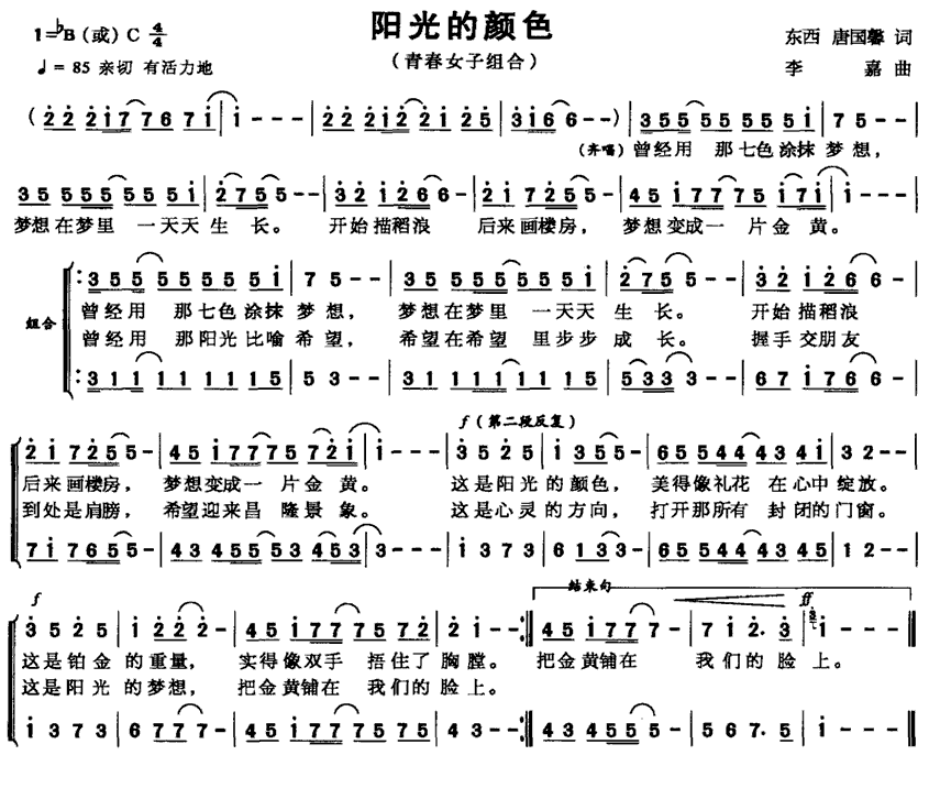 阳光之歌(杨茂森 孙有华词 漫生曲)合唱谱