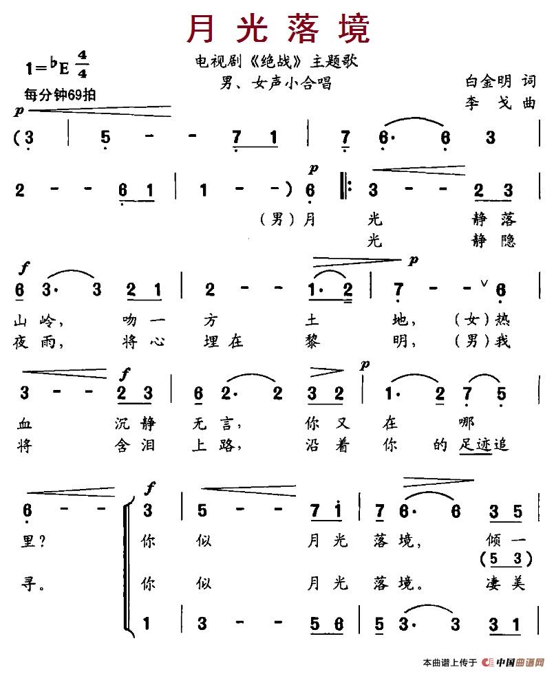 月光落境(电视剧《绝战》主题歌)合唱谱