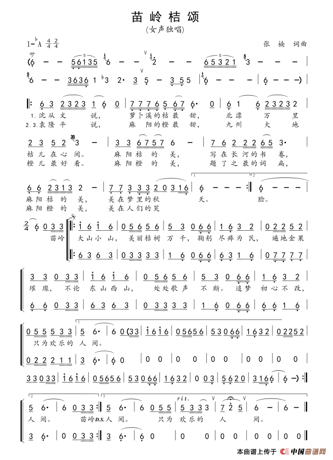 苗岭桔颂(张楠曲 张楠词 田欢演唱)