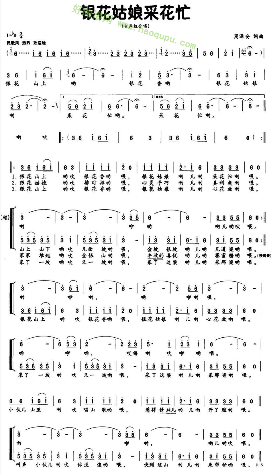 《银花姑娘采花忙》(独唱+伴唱)合唱谱