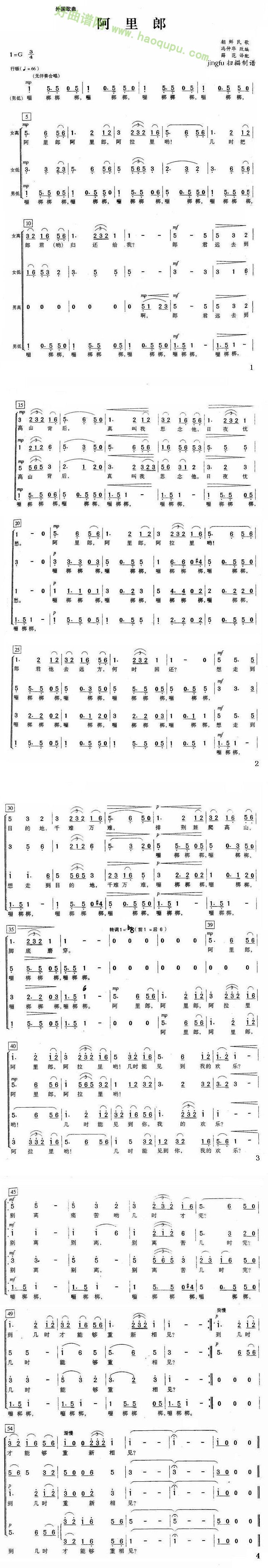 二胡乐谱曲谱 我的祖国(二胡二重奏 影片《上甘岭