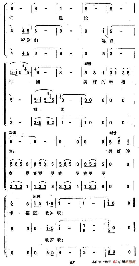 欢乐的采花汉(电影《绿海天涯》插曲)合唱谱该歌谱演奏者为肖珩 ,歌曲名称为欢乐的采花汉,歌谱类型为合唱谱。集体演唱多声部声乐作品的艺术门类,常有指挥,可有伴奏或无伴奏。它要求单一声部音的高度统一,要求声部之间旋律的和谐,是普及性最强、参与面最广的音乐演出形式之一。人声作为合唱艺术的表现工具,有着其独特的优越性,能够最直接地表达音乐作品中的思想情感,激发听众的情感共鸣。声部的数量没有规定,一般有四个声部。多为男高音区,男中低音区,女高音区,女中低音区。