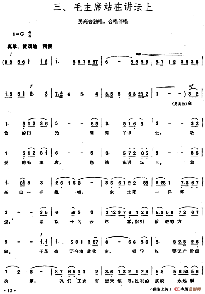 《毛泽东同志主办农民运动讲习所颂歌》组曲:三、毛主席站在讲坛上