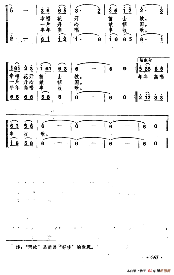 苗家喜唱丰收歌合唱谱