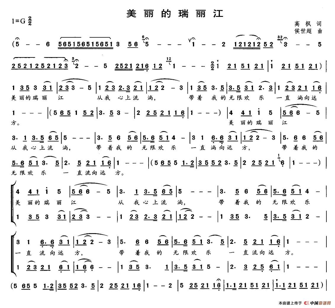 美丽的瑞丽江(高枫词 侯世超曲)合唱谱
