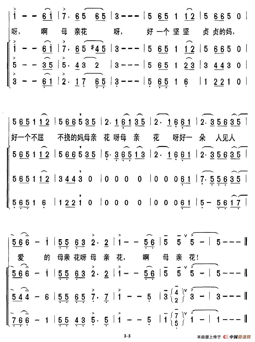 母亲花合唱谱该歌谱演奏者为孙德华,歌曲名称为母亲花,歌谱类型为合唱谱。合唱(hé chàng)chorus指集体演唱多声部声乐作品的艺术门类,常有指挥,可有伴奏或无伴奏。它要求单一声部音的高度统一,要求声部之间旋律的和谐,是普及性最强、参与面最广的音乐演出形式之一。人声作为合唱艺术的表现工具,有着其独特的优越性,能够最直接地表达音乐作品中的思想情感,激发听众的情感共鸣。声部的数量没有规定,一般有四个声部。多为男高音区,男中低音区,女高音区,女中低音区。