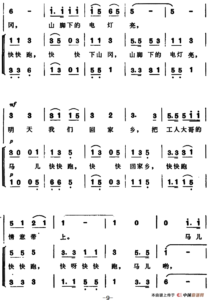 马儿哟,你快快跑合唱谱