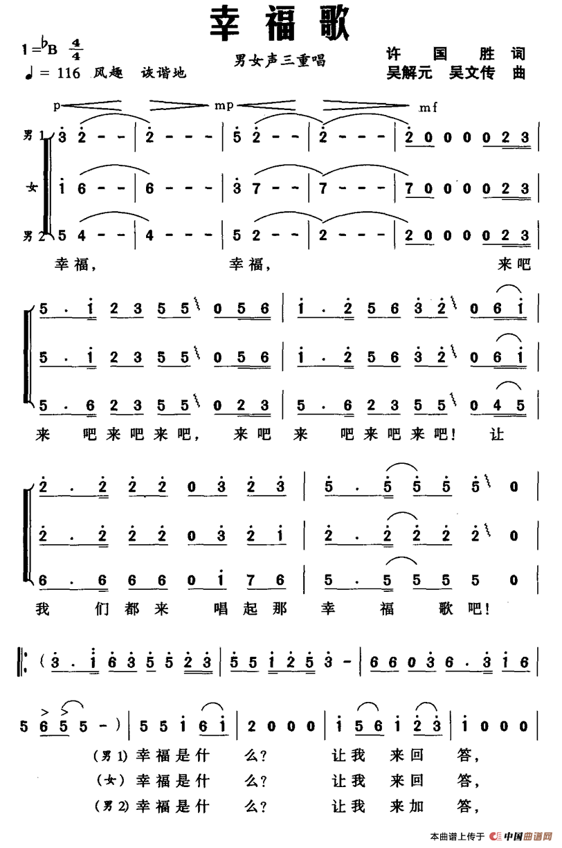 幸福歌(许国胜词 吴解元 吴文传曲)合唱谱