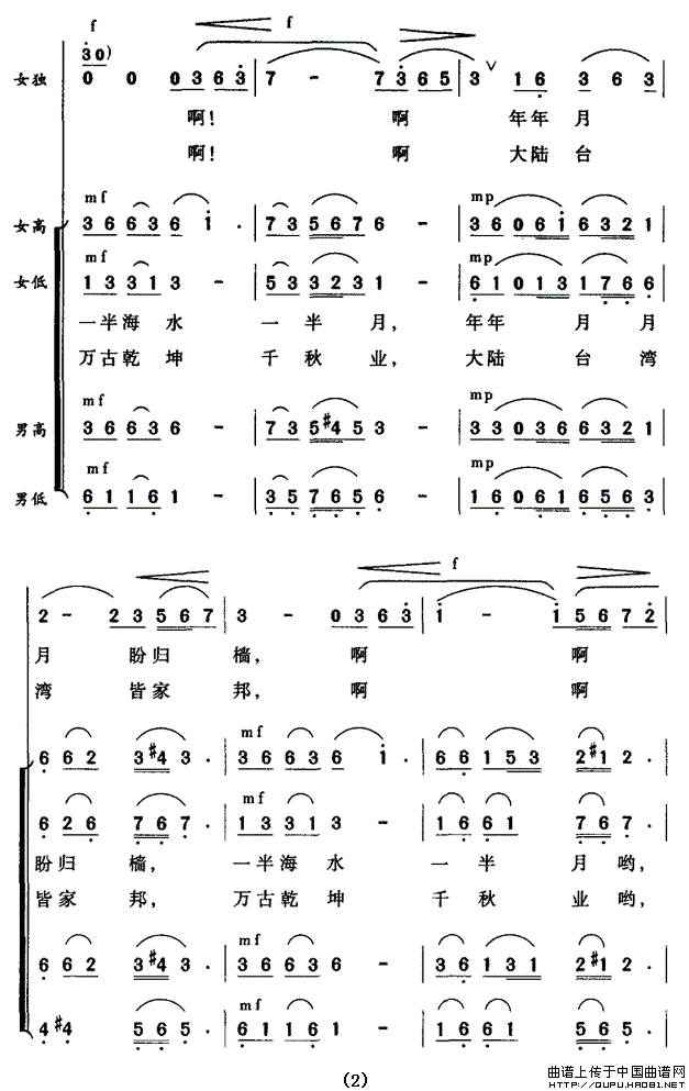 大陆台湾皆家邦合唱谱