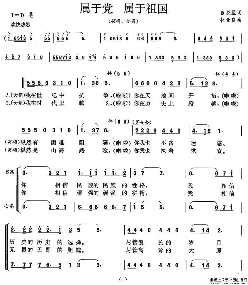 属于党 属于祖国合唱谱该歌谱演奏者为合唱,歌曲名称为属于党 属于祖国,歌谱类型为合唱谱。指集体演唱多声部声乐作品的艺术门类,常有指挥,可有伴奏或无伴奏。它要求单一声部音的高度统一,要求声部之间旋律的和谐,是普及性最强、参与面最广的音乐演出形式之一。人声作为合唱艺术的表现工具,有着其独特的优越性,能够最直接地表达音乐作品中的思想情感,激发听众的情感共鸣。声部的数量没有规定,一般有四个声部。多为男高音区,男中低音区,女高音区,女中低音区。